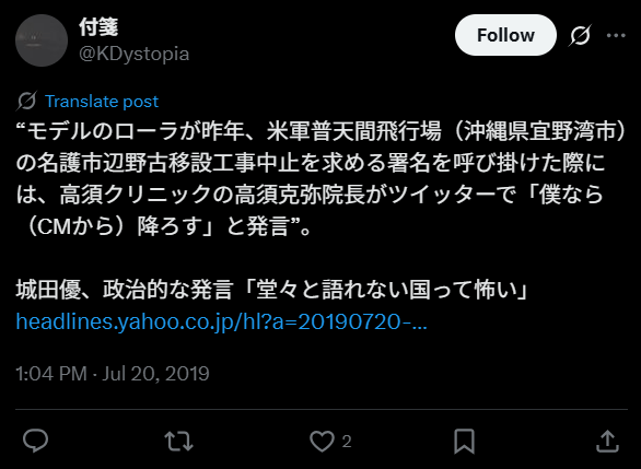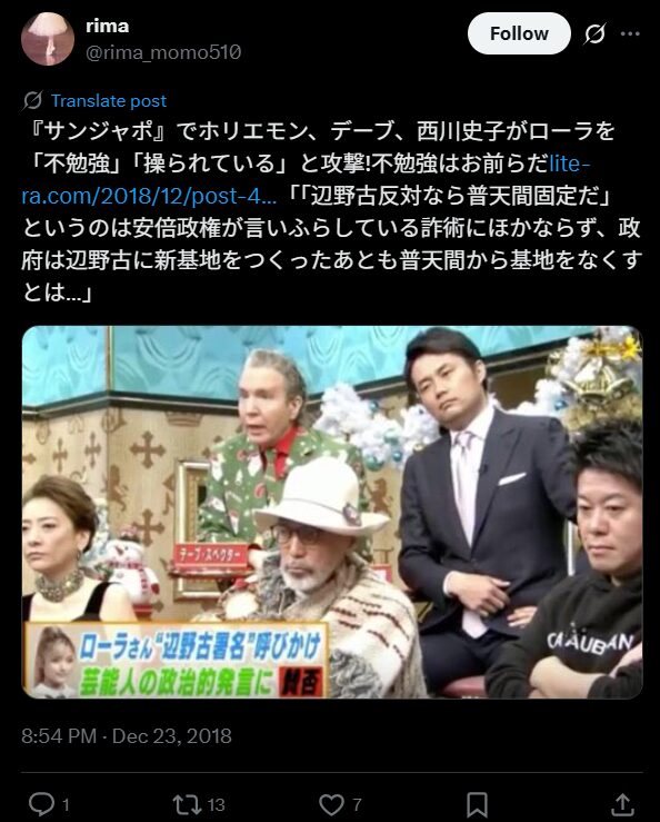 ローラさんは天真爛漫なキャラでブレイクしたハーフタレント。彼女は政治的発言をしたために、芸能界を干される結果となりました。