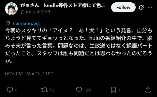 この発言について実は生放送ではなく、録音パートだったそうです。つまり彼だけでなく、番組スタッフも差別に気づかなかったことになります。意図せぬことが差別発言に繋がることがある事例といえるでしょう。