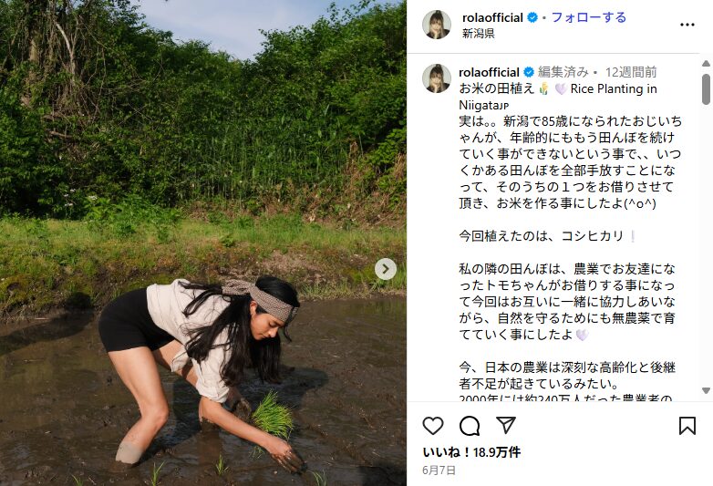 そんな彼女は2025年に新潟県で農業を始めるとインスタで報告しています。新潟では「コシヒカリ」を育てており、この行動も「農業従事者の高齢化と後継者不足」について考えた結果だそうです。現在も政治に興味を持ち取り組んでいるのがわかります。