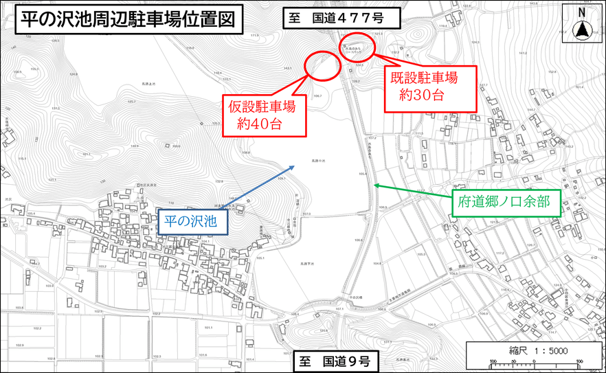 【平の沢池周辺】既設駐車場・仮設駐車場