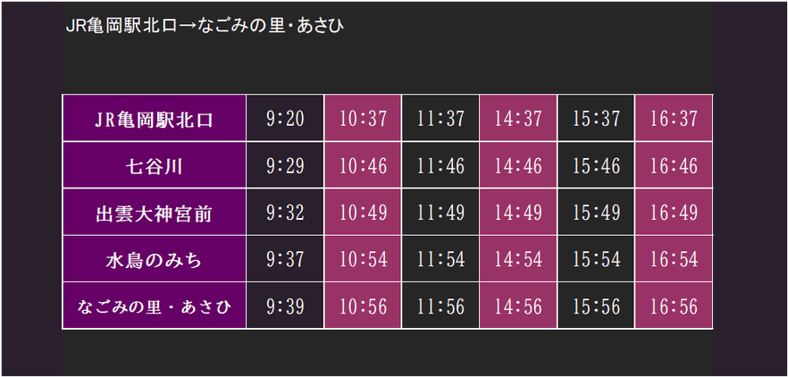 【桜シャトルバス時刻表】