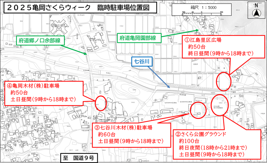 亀岡市七谷川・和らぎの道の臨時駐車場の場所や利用可能時間は?