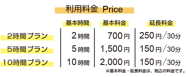 | 利用時間 | 平日18時から21時 土日9時から21時 |